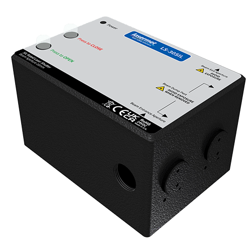 Als Teil eines hochintegrierten Sicherheitssystems konzipiert, verfügt es über einen federbelasteten Verschluss und positive Testkontakte. In geschlossenem Zustand lenkt der Shutter den eintreffenden Laserstrahl auf ein internes Strahlenbündel ab, wo die Energie in Wärme umgewandelt wird, die in das Aluminiumgehäuse des Shutters abgeleitet wird. Wenn der Shutter geöffnet ist, durchläuft der Laserstrahl den Shutter ohne Unterbrechung.